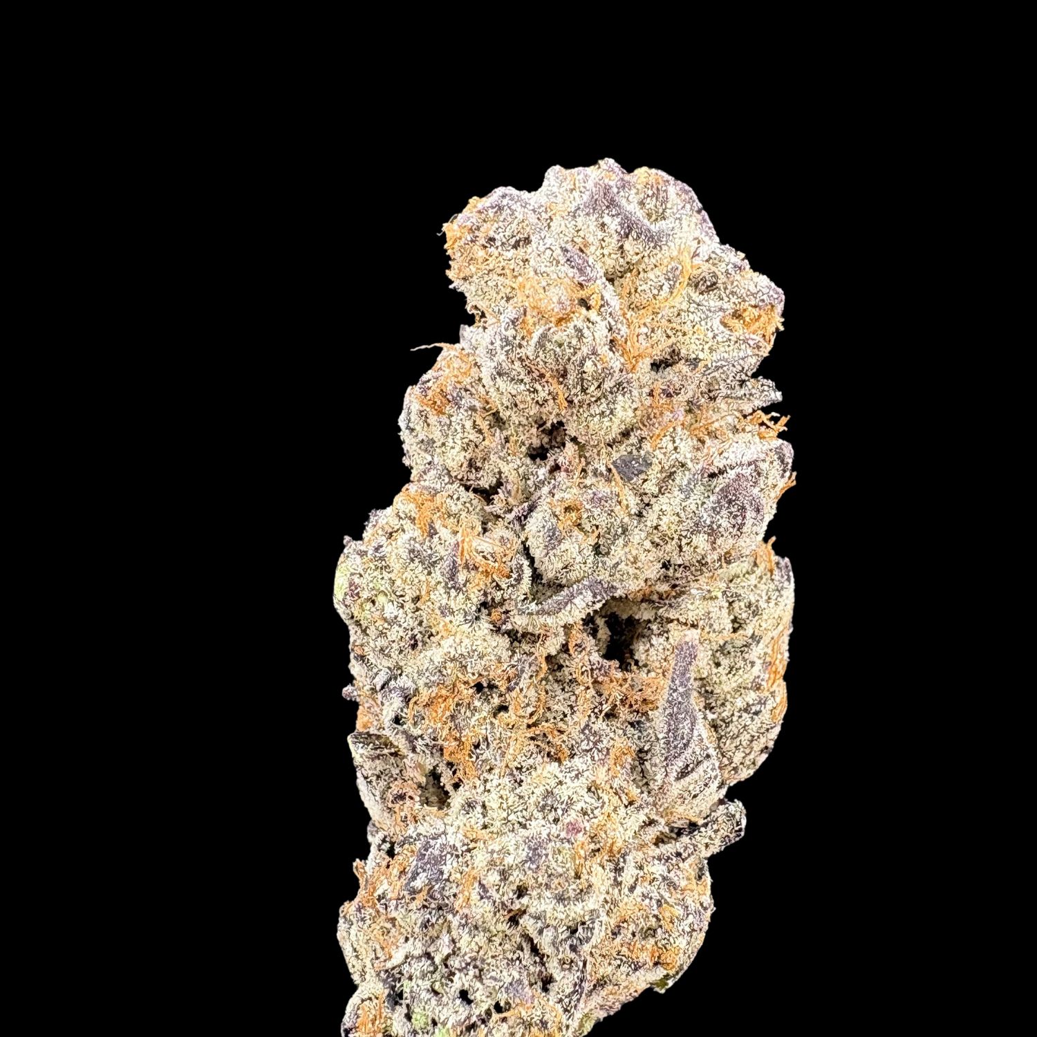 The flower glistens with crystalline trichomes that coat every surface, creating a frosted appearance that indicates high resin production. This generous trichome coverage directly correlates to the potent 32% THCa content and rich terpene profile.