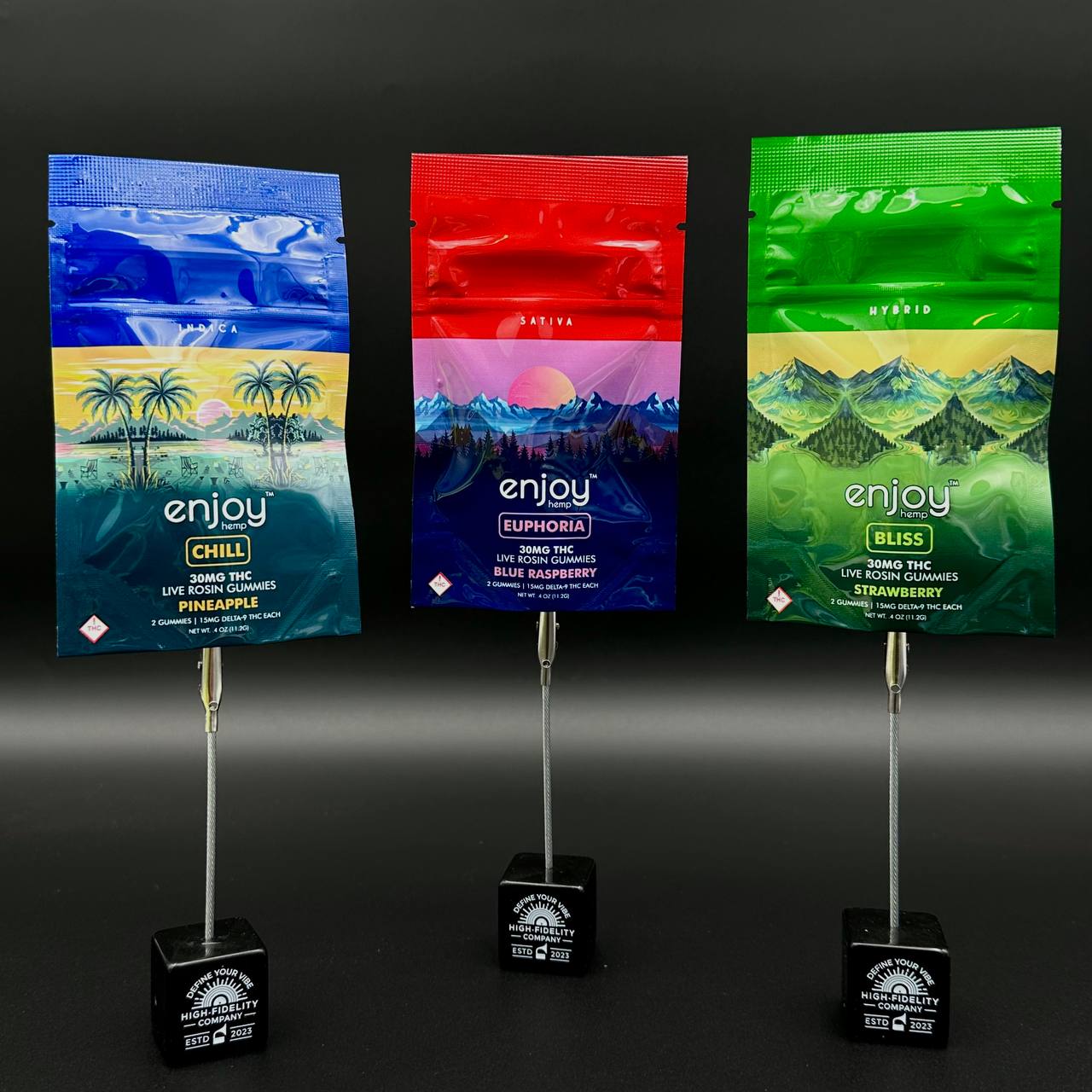 Ingredients: Sugar, Tapioca Syrup, Water, Pectin, Natural Flavors, Hemp Extract, Citric Acid, Natural Fruit Flavors, Natural Colors, Terpenes