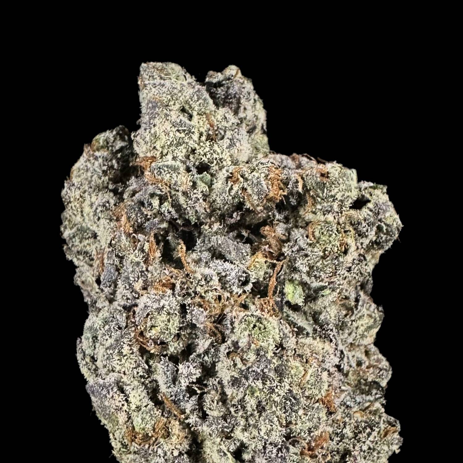 Abundant milky trichomes blanket every surface, creating a frosty appearance that sparkles under light. The heavy resin production delivers both potency and preservation of the strain’s complex terpene profile.